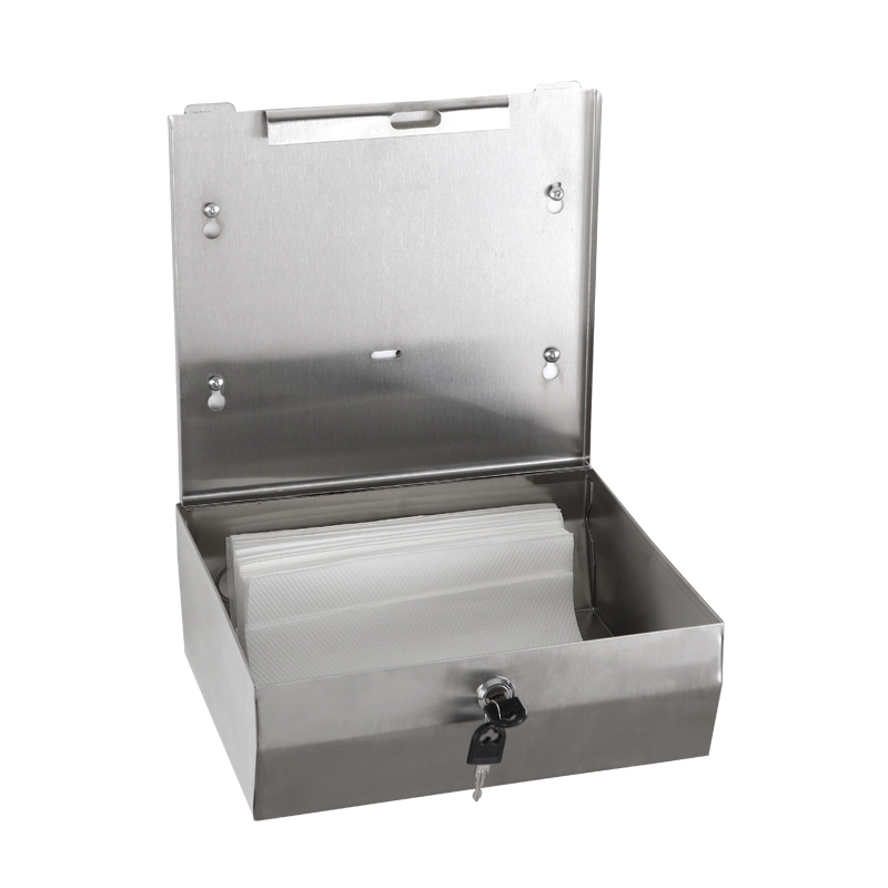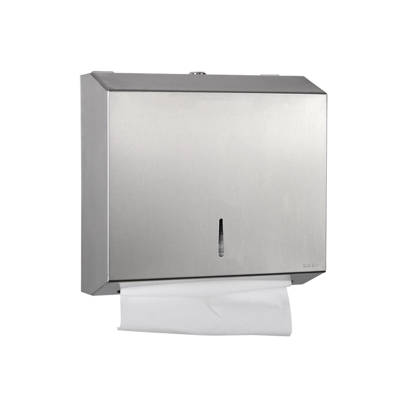 Paper towel dispenser from HOTEC, manual surface mounting, made from 304 stainless steel, fully welded body. Match many fashion bathrooms, bring healthy life. Durability, waterproof and easy to clean. Security lock, vandal-proof, frontal window to see the quantity.